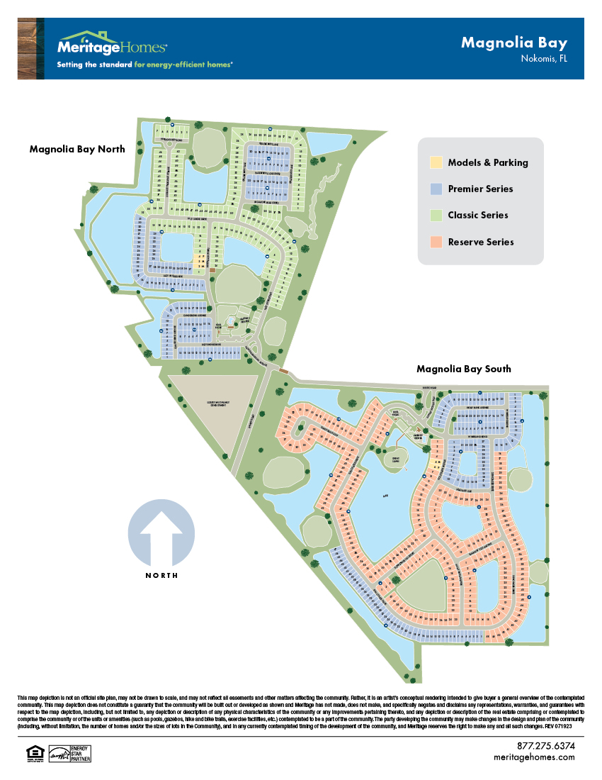 The Magnolia Bay Premier Series offers single-family homes with open-concept floorplans in Nokomis, FL. Convenient to I-75, this community offers easy access to plentiful shops and restaurants in downtown Sarasota and Venice. Residents will enjoy fabulous amenities that include a clubhouse, pool, fitness center, sports courts and more. Every Meritage home boasts energy-efficient features.