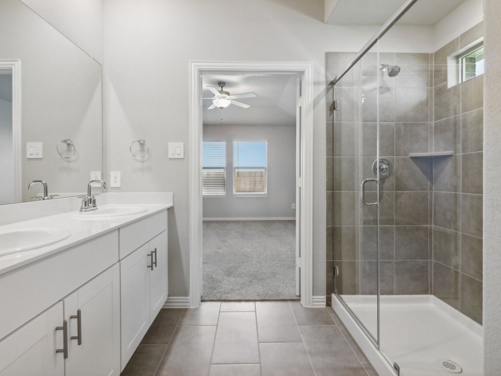 1The versatile flex space makes a great study or game room and storage helps put everything in its place. White cabinets with white-toned quartz countertops, beige tone EVP flooring with light brown carpet.