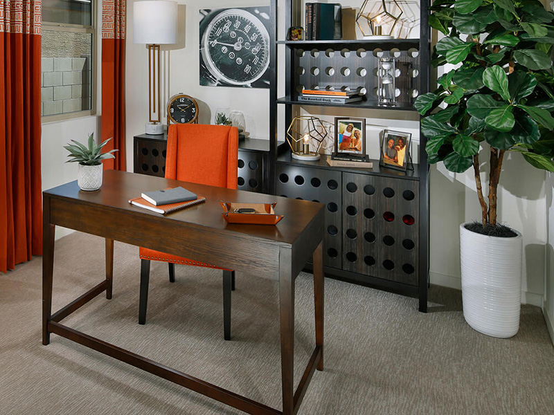 If you own a Meritage home, you may already have a work-at-home space as a feature in your floorplan. Meritage is incorporating work study alcoves in some of its homes. "These alcoves are between four and six feet wide and two feet deep, providing a great solution for those who are looking for a space to work or study at home, without having to forego an entire room in their home," says Juedes. "These work study alcoves are carved out of existing floor plans within more private areas, like the bedroom hallway." Meritage also offers other design elements that include dedicated first-floor den and study rooms; convertible second-floor spaces such as lofts and game or media rooms; and smaller spaces, bulk storage closets, tech centers, as well as large islands and recipe desks for kitchens.